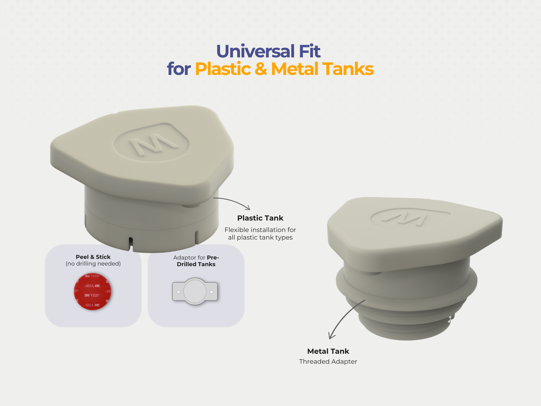 - No-Drill Installation: Preserve your tank’s integrity by mounting with the included 3M double-sided tape or using a standard 32mm port—no special tools required.